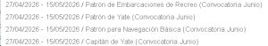 • Capitán de Yate: 10:30 Módulo navegación (1:15) y 12:15 Módulo Genérico (meteorología y inglés) (1 hora)